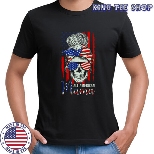 All American Mama USA Flag Messy Bun Skull Mom 4th Of July T-Shirt, classic, ladies, long sleeved, hoodie and sweatshirt