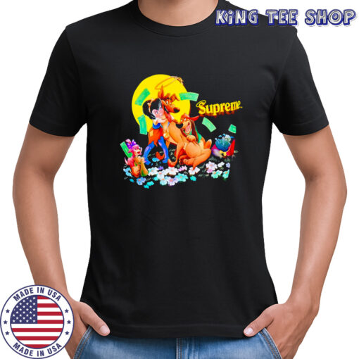 Unleash your inner nostalgia with the All Dogs Go to Heaven Supreme cartoon shirt. This design is a whimsical journey back to childhood Saturday mornings, where animated adventures filled our hearts with joy. Imagine strolling down memory lane, wrapped in the vibrant colors and playful characters of this shirt. The visuals are a fusion of retro charm and modern flair, perfect for those who appreciate a dash of vintage in their wardrobe.