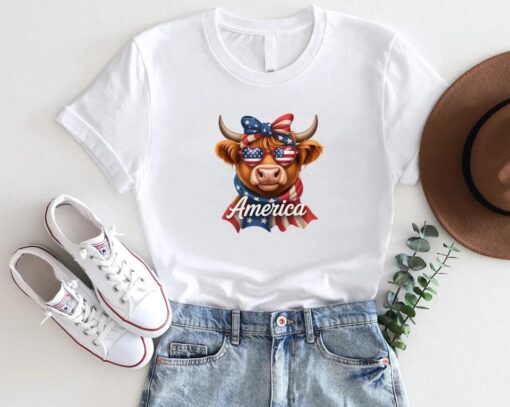 America Highland Cow Shirt – 4th of July Patriotic Cow in Sunglasses
