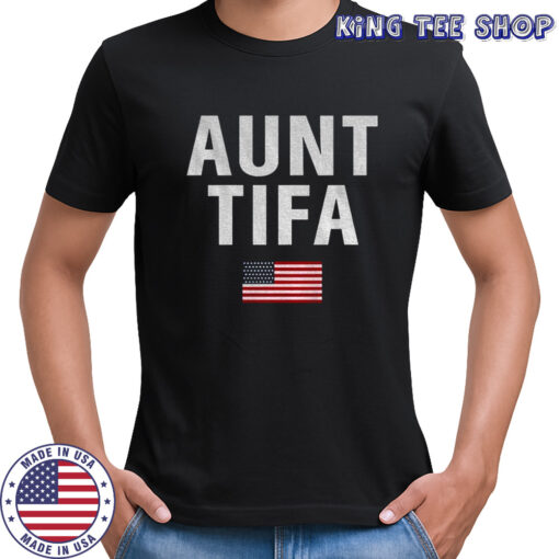 This Aunt Tifa American flag shirt is not just a piece of clothing; it’s a symbol of patriotism and pride crafted into a stunning design. Picture yourself draped in the bold colors of the American flag, each stripe and star meticulously accentuating your style. The visual impact is undeniable, evoking a sense of nostalgia for the values and history that shape our nation. This shirt is more than fabric; it’s a statement, a statement of your love for America.