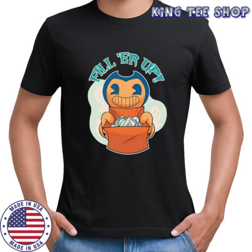 **Bendy Fill Er Up Halloween shirt** is not just a piece of clothing; it’s a portal to a world where Halloween magic comes alive. Imagine donning this shirt and feeling the whimsical charm of a moonlit night, where pumpkins grin mischievously and ghosts dance in the shadows. The design intricately weaves together eerie elements with a playful twist, making it a perfect blend of spooky and fun. Picture yourself wearing this shirt and instantly becoming the life of the Halloween party, enchanting everyone with your festive spirit and unique style.