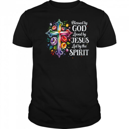 Blessed By God Loved By Jesus Flowers Cross Christian Women shirt, hoodie, sweater, longsleeve and ladies t-shirt