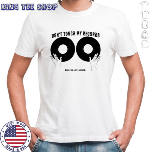 **Don’t Touch My Records Records Are Forever** t-shirt is not just an article of clothing; it’s a statement, a piece of art that resonates with those who understand the power of music and the nostalgia of vinyl records. The design captures the essence of a bygone era, a time when music was cherished, and record collections were sacred. The visuals on the shirt transport you to a cozy living room filled with shelves of records, each one holding memories and melodies that last a lifetime. Wearing this shirt isn’t just about fashion; it’s about wearing your passion on your sleeve, quite literally.