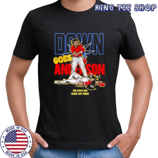 **Down Goes Anderson shirt** is not just a piece of clothing; it’s a statement, a bold proclamation of individuality and style. Imagine yourself slipping into this shirt, feeling the soft fabric embrace you in a comforting hug of self-expression. The design speaks volumes without uttering a single word, drawing eyes with its unique blend of colors and patterns that effortlessly blend nostalgia with a modern twist.