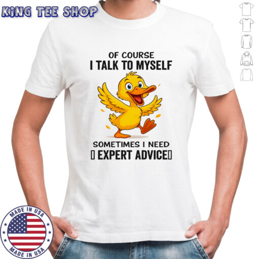 The visuals on this **Duck of course I talk to myself sometimes I need expert advice shirt** are vibrant and eye-catching, drawing attention to the witty phrase that speaks volumes about individuality and introspection. The color palette is lively, adding to the overall charm and charisma of the design. Picture yourself wearing this shirt at a casual gathering with friends, sparking conversations and eliciting smiles wherever you go. It’s not just an outfit choice; it’s a mood, an attitude that radiates confidence and self-assurance.