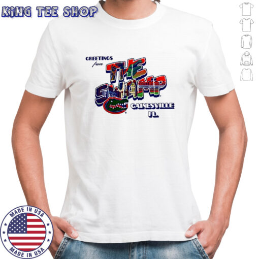 As you slip into this shirt, you become more than just a spectator; you become a part of the rich tapestry of Florida’s history and culture. The design’s playful yet sophisticated style exudes a sense of empowerment, inviting you to embrace your individuality with a touch of humor and charm. Whether you’re exploring the bustling streets of Miami or unwinding in the serene beauty of the Everglades, this shirt is your perfect companion, celebrating your love for Florida in all its glory. So why wait? Let the Florida Gators Hyper Local Swamp Postcard shirt be your ticket to a world where every moment is a postcard-worthy memory.