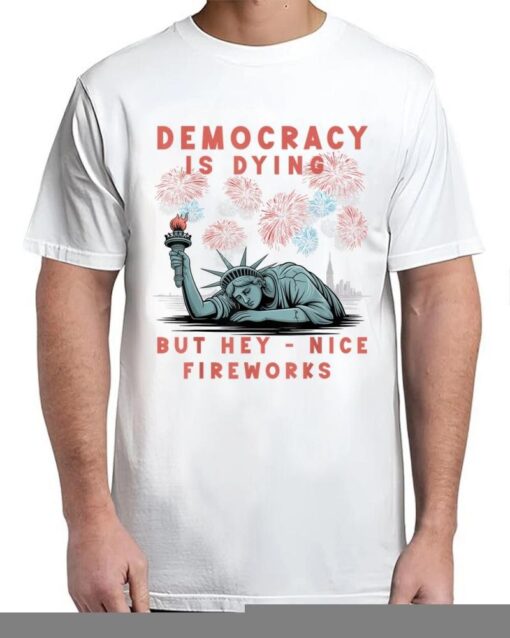 Funny Democracy Is Dying But Hey Nice Fireworks 4th Of July T-Shirt, hoodie, sweater, longsleeve and ladies t-shirt
