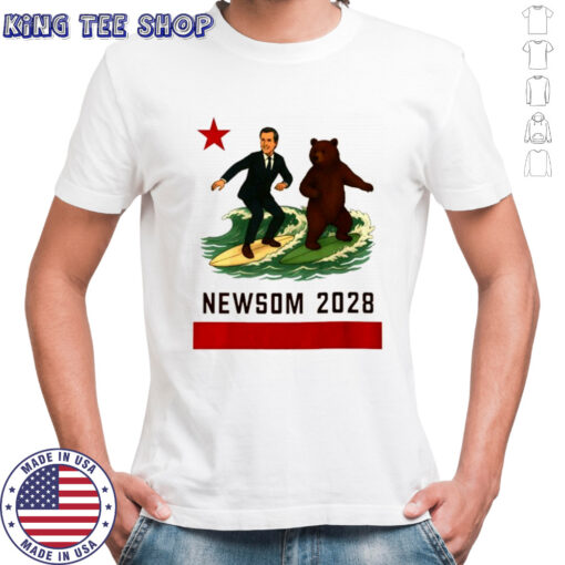 So, why wait? Embrace your inner Californian spirit and make a bold statement with the **Gavin Newsom Bear surfing California flag Bear 2028 political shirt**. Let your style speak volumes and stand out from the crowd. Wear it to rallies, beach parties, or casual outings to show your love for California and its unique blend of surf, sun, and politics. Join the movement and wear your values proudly!
