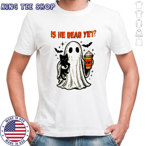 Ghost black cat FDT Is he dead yet Halloween shirt, classic, ladies, long sleeved, hoodie and sweatshirt