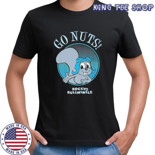 The visuals of the **Go nuts rocky Bullwinkle shirt** are a vibrant explosion of colors, reminiscent of a sunny day spent watching cartoons on a cozy couch. The playful design captures the essence of youthful exuberance, making it a perfect choice for casual outings or lazy weekends when you want to inject a dose of fun into your wardrobe. Slip into this shirt, and instantly feel the carefree spirit of your favorite childhood characters enveloping you in a warm hug of nostalgia and joy.