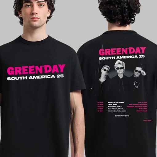 Indulge in the music lover within you and let your style speak volumes with the Green Day South America 25 Schedule Tour Dates August And September 2025 T-Shirt. Wear it with pride, embody the spirit of rock ‘n’ roll, and relive the magic of Green Day’s historic tour. Get your hands on this must-have piece of music memorabilia and infuse your wardrobe with a dose of legendary energy today!