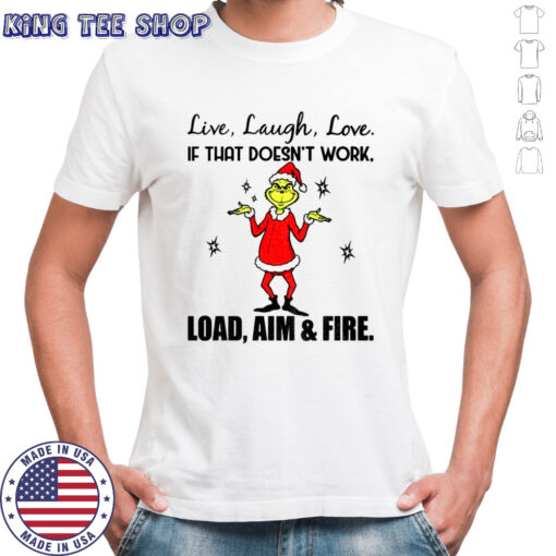 Grinch live laugh love if that doesn’t work load aim and fire Christmas shirt