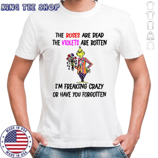 Grinch the roses are dead the violets are rotten I’m freaking crazy or have you forgotten Christmas shirt