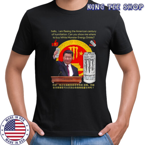 hello I am fleeing the American century of humiliation Monster Energy drinks parody shirt