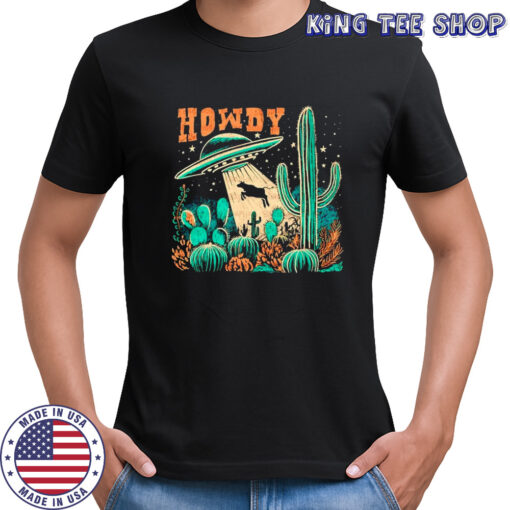Howdy western UFO abducts cow vintage cowboy alien graphic shirt, classic, ladies, long sleeved, hoodie and sweatshirt