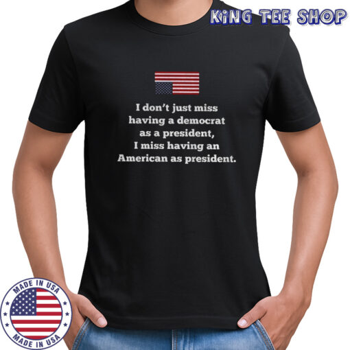 The style of I don’t just miss having a decorated as a president I miss having an American as president shirt is versatile yet impactful, making it perfect for various occasions. Whether you’re attending a political rally, celebrating Independence Day, or simply expressing your love for the nation, this shirt effortlessly complements your personality and beliefs. Picture yourself wearing this shirt and instantly feeling a surge of empowerment and unity with fellow Americans. Embrace the opportunity to showcase your American pride with a touch of style and flair.