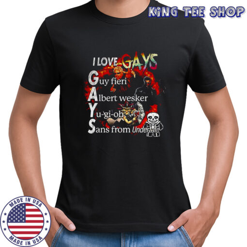 I Love GAYS guy fieri albert wesker yu-gi-oh sans from undertale shirt