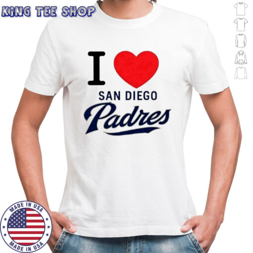So why wait? Let your love for the San Diego Padres shine through with this stylish and comfortable shirt. Wear it to the ballpark, to meet fellow fans, or even just around town to spread the Padres spirit wherever you go. Get your hands on this I Love San Diego Padres shirt today and wear your fandom proudly for all to see.