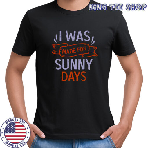 As you slip into the **I Was Made For Sunny Days T-Shirt**, feel a wave of positivity wash over you, like stepping into a sunlit meadow. Embrace the joy it brings and let your spirit shine as brightly as the sun on a cloudless day. Wear it with pride, and let its cheerful design be a reflection of your vibrant personality. Because, after all, some days are meant for sunshine, and this t-shirt is here to remind you to embrace each moment with a smile.