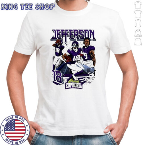 **Justin Jefferson 18 NFL Minnesota Vikings Player shirt** is not just a piece of clothing; it’s a statement of allegiance to the football spirit. Picture this: bold purple and gold hues intertwining to form a dynamic design that echoes the power and determination of the Minnesota Vikings. The jersey-inspired number 18 pays homage to the talented Justin Jefferson, embodying the essence of NFL glory. Wearing this shirt is like donning a shield of pride, a symbol of unwavering support for your team.