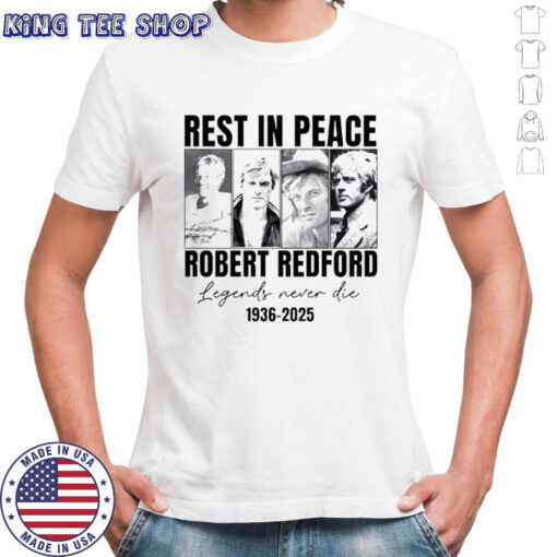 **Legends Never Die Robert Redford rest in peace 1936-2025 shirt** pays tribute to the timeless essence of a true cinematic legend. Imagine donning a piece of history, where every thread weaves a tale of nostalgia and reverence for the iconic Robert Redford. The design embodies a visual masterpiece, capturing the essence of his enduring spirit and the indelible mark he left on the silver screen. As you gaze upon the intricate details, you can almost hear the whispers of classic lines and feel the magnetic presence of a legendary actor.
