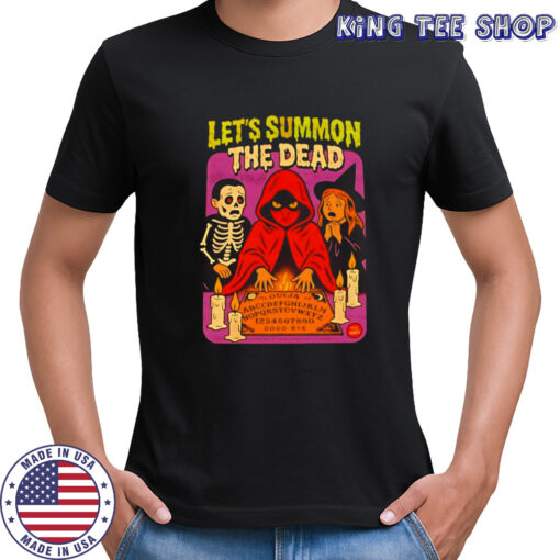 **Let’s summon the dead shirt** transports you to a realm where style meets the supernatural. Picture this: a moonlit graveyard, ethereal spirits dancing in the mist, and you, clad in this hauntingly beautiful shirt. The design features intricate details of ghostly apparitions intertwined with gothic elements, creating a mesmerizing visual narrative that speaks to your inner mystic. The color palette, a blend of midnight blues and shadowy blacks, sets the mood for an otherworldly experience. Whether you’re a fan of the occult, a lover of all things eerie, or simply seeking to make a statement, this shirt beckons to be worn with pride.