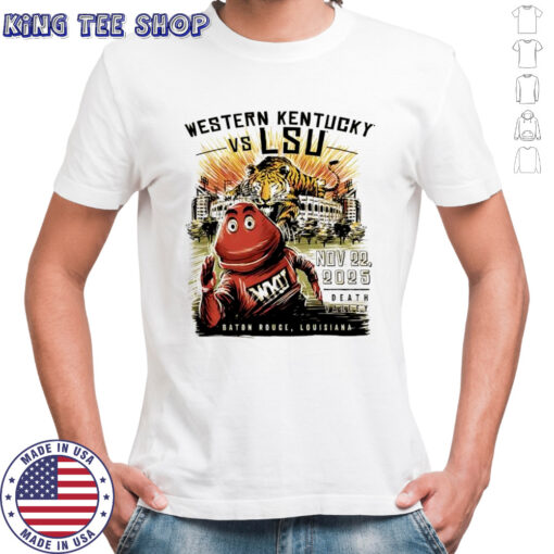 **LSU Tigers vs Western Kentucky gameday 2025 mascot shirt** brings the spirit of the game to life in a vibrant and captivating design. Picture this: a roaring tiger, emblematic of strength and passion, facing off against a spirited mascot, embodying energy and team pride. The clash of colors and symbols on this shirt creates an electrifying visual feast for any sports enthusiast. The intricate details and dynamic composition make it a standout piece, perfect for expressing your love for the game in style.