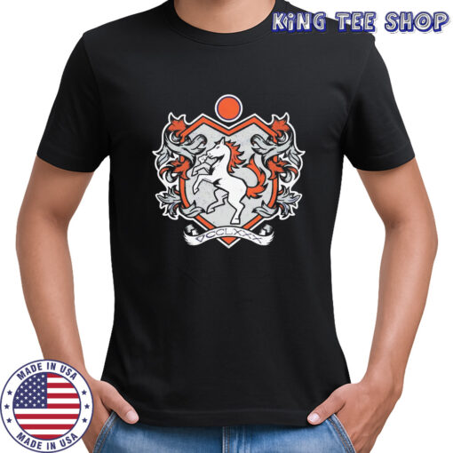 The blend of medieval aesthetics with contemporary sports elements gives this shirt a unique and powerful vibe. Whether you’re heading to a game day party, a casual hangout with friends, or simply want to stand out in style, this shirt is the perfect choice. It exudes a sense of pride and camaraderie, making it ideal for showcasing your love for the Denver Broncos in a bold and fashionable way. Slip into this shirt and instantly feel the rush of excitement and unity that comes with being a part of the Broncos fandom.