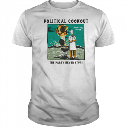 Political cookout the party never stops shirt, hoodie, sweater, longsleeve and ladies t-shirt