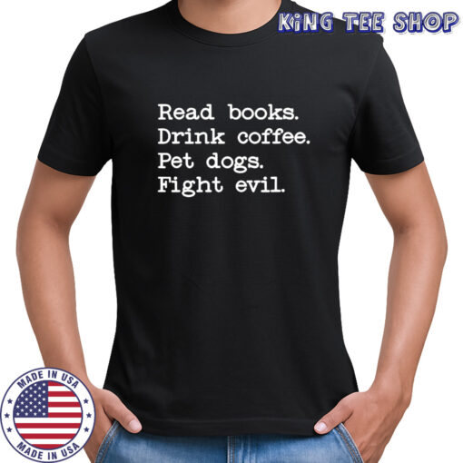 Read books Drink coffee Pet dogs Fight evil shirt, classic, ladies, long sleeved, hoodie and sweatshirt