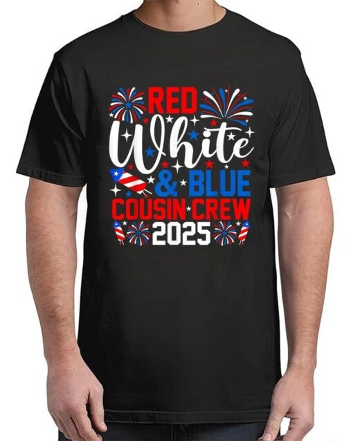 Red White And Blue Cousin Crew 2025 4th Of July Fireworks T-Shirt, hoodie, sweater, longsleeve and ladies t-shirt