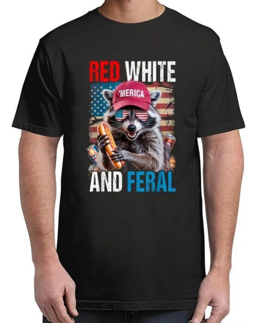 Red White and Feral Funny Raccoon Patriotic 4th of July USA T-Shirt, hoodie, sweater, longsleeve and ladies t-shirt