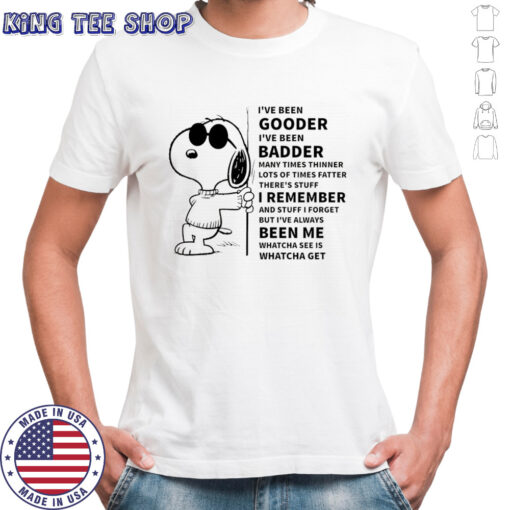 Snoopy I’ve been gooder I’ve been badder many times thinner lots of times fatter there’s stuff I remember shirt