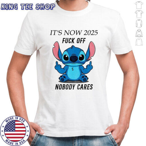 As you envision yourself wearing the **Stitch middle finger it’s now 2025 fuck off nobody cares shirt**, allow it to ignite a spark of boldness within you. Don’t just wear a shirt; wear a symbol of nonconformity and self-expression. Embrace your uniqueness, stand out from the crowd, and let your outfit reflect your unapologetic attitude. Dare to be different, dare to be you – let Stitch guide you in flipping the bird to societal norms.