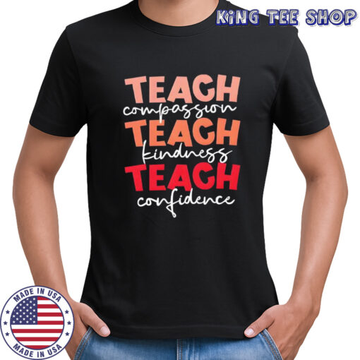 As you slip into the **Teach compassion teach kindness teach confidence shirt**, envision the ripple effect your actions can create. Let this shirt be more than just part of your wardrobe; let it be a symbol of the change you wish to see in the world. Embrace the values it represents and wear them with pride, knowing that each time you put it on, you’re not just getting dressed—you’re making a statement.