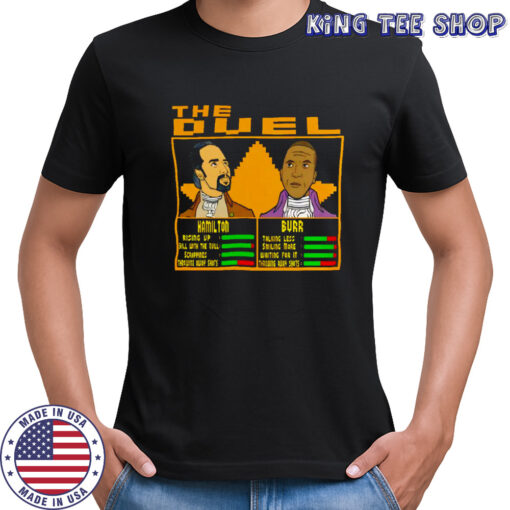 As you slip into this shirt, you don’t just wear cloth; you wear a statement. The design’s bold visuals and vintage flair transport you to an era where duels settled disputes, and honor was paramount. Whether you’re a history buff, a fashion enthusiast, or simply someone drawn to tales of valor and rivalry, this shirt beckons. Imagine donning it at a casual outing, a historical event, or whenever you crave a touch of distinguished style. Embrace the spirit of the duel, embody the resolve of Hamilton and Burr, and let this shirt be your emblem of spirited defiance.
