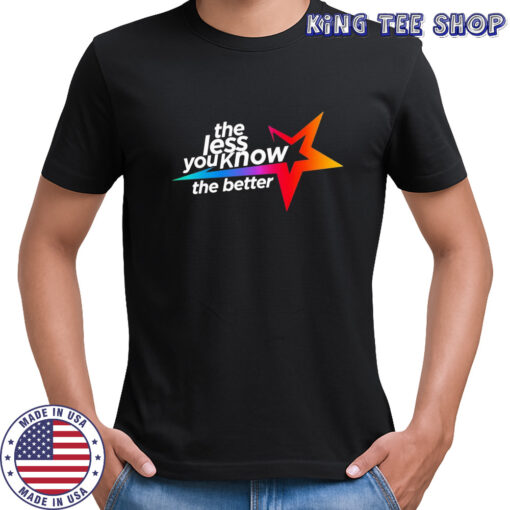 **The Less you know shirt** is not just a piece of clothing; it’s a statement, a vibe, a whole mood encapsulated in fabric. Picture this: a sleek, black canvas adorned with a minimalist design that speaks volumes without saying a word. The graphic, simple yet striking, draws you in, inviting you to embrace the enigmatic allure of less is more. When you don this shirt, it’s not just about what you wear, but how you wear it – with confidence, with a touch of mystery that leaves others intrigued.