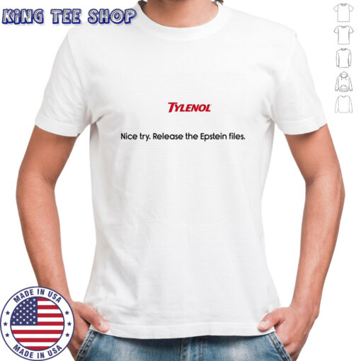 This Tylenol nice try release the Epstein files shirt is not just a piece of clothing; it’s a statement, a conversation starter, a bold expression of your personality. Imagine donning this shirt and instantly feeling a wave of empowerment wash over you. The design, with its intricate details and vibrant colors, exudes a sense of rebellious charm that is hard to ignore. As you wear it, you carry with you a piece of a story, a nod to a movement, a symbol of standing up for what you believe in.