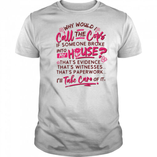 Why would I call the cops if someone broke into my house shirt is not just a piece of clothing; it’s a statement, a symbol of resilience and defiance. Imagine a design that captures the essence of standing strong in the face of adversity. Picture a silhouette of a bold individual, framed by shattered glass, exuding determination and fearlessness. This shirt tells a story of courage, reminding us that even in moments of vulnerability, our spirit remains unbreakable. The color palette, a mix of deep blues and blacks, adds a sense of mystery and strength to the overall visual impact.