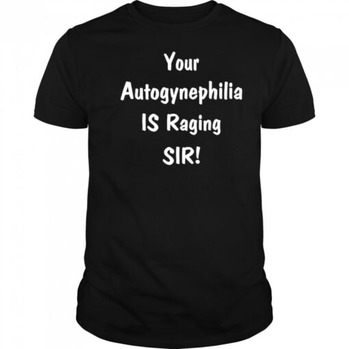 This is no ordinary shirt; this is the Your autogynephilia is raging sir shirt that speaks volumes without saying a word. Imagine a design that blends humor and boldness seamlessly, a visual narrative that sparks conversations and turns heads wherever you go. Picture yourself adorned in a shirt that radiates confidence and wit, a garment that not only covers your back but also showcases your unique personality effortlessly. The design, a clever play on words, is a beacon of individuality in a sea of mundane fashion choices.